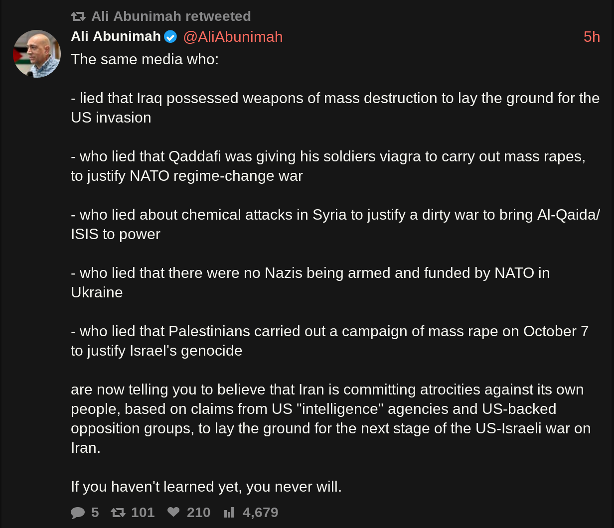 Ok so what is actually going on in Iran? Have any military units defected or any armories been seized? Otherwise this is probably just gonna fizzle unfortunately, Iran is so cucked at this point that it would be more useful as a sink for US resources in a civil war than as the leader of the completely dead “axis of resistance”