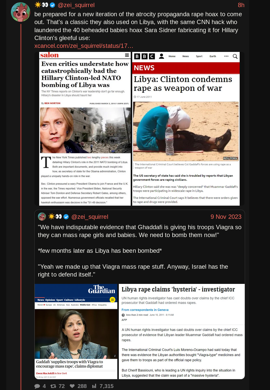 Following that, many of the refugees that rightoids were seething about throughout the 2010s and 20s were from Syria, so defending asylum seekers (a noble cause to be sure) kind of depends on hyping up ASSAD BAD.