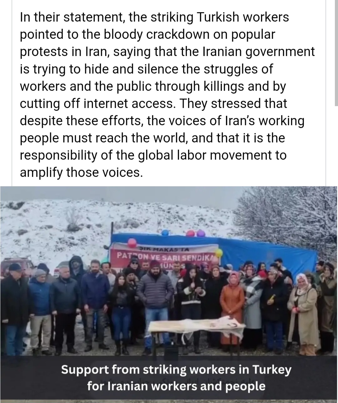 >Workplace control: From now on, the management of the Machine Manufacturing Company, AzarAb, and Wagon Pars factories will be in the hands of workers’ councils elected by the workers themselves. We no longer recognize managers appointed by the state or the regime’s puppet unions.https://cpiran.org/statement-of-the-workers-councils-of-arak-all-power-to-the-councils/Unconditional support to Iranian workers as they face the full savagery of capital on the local and international fronts.