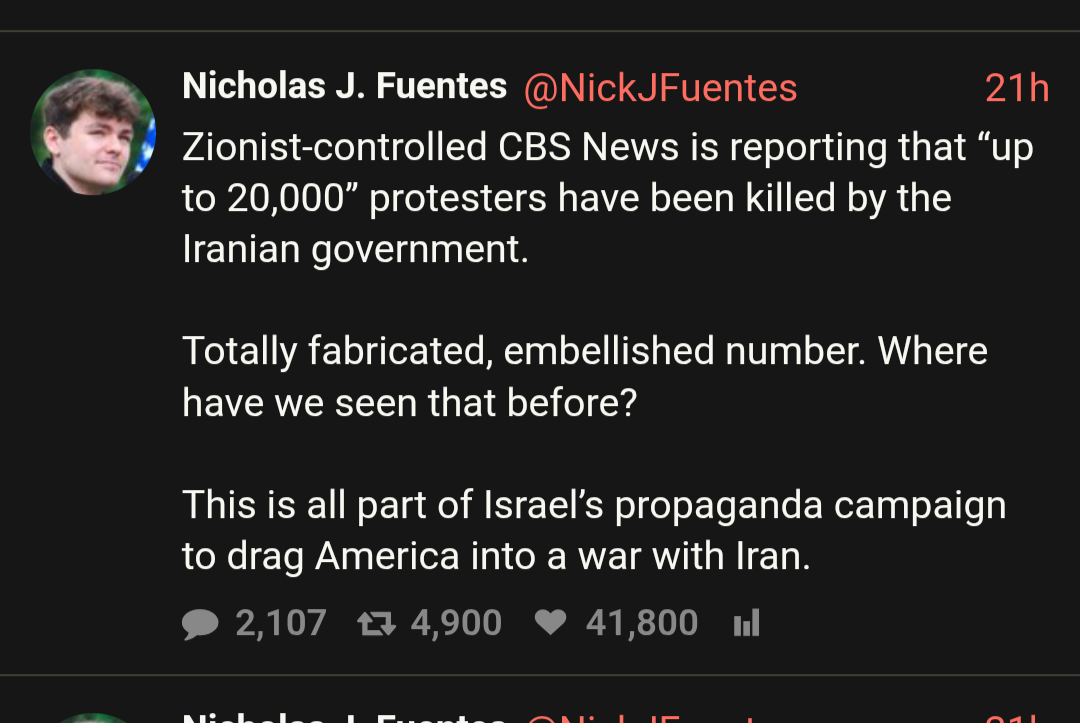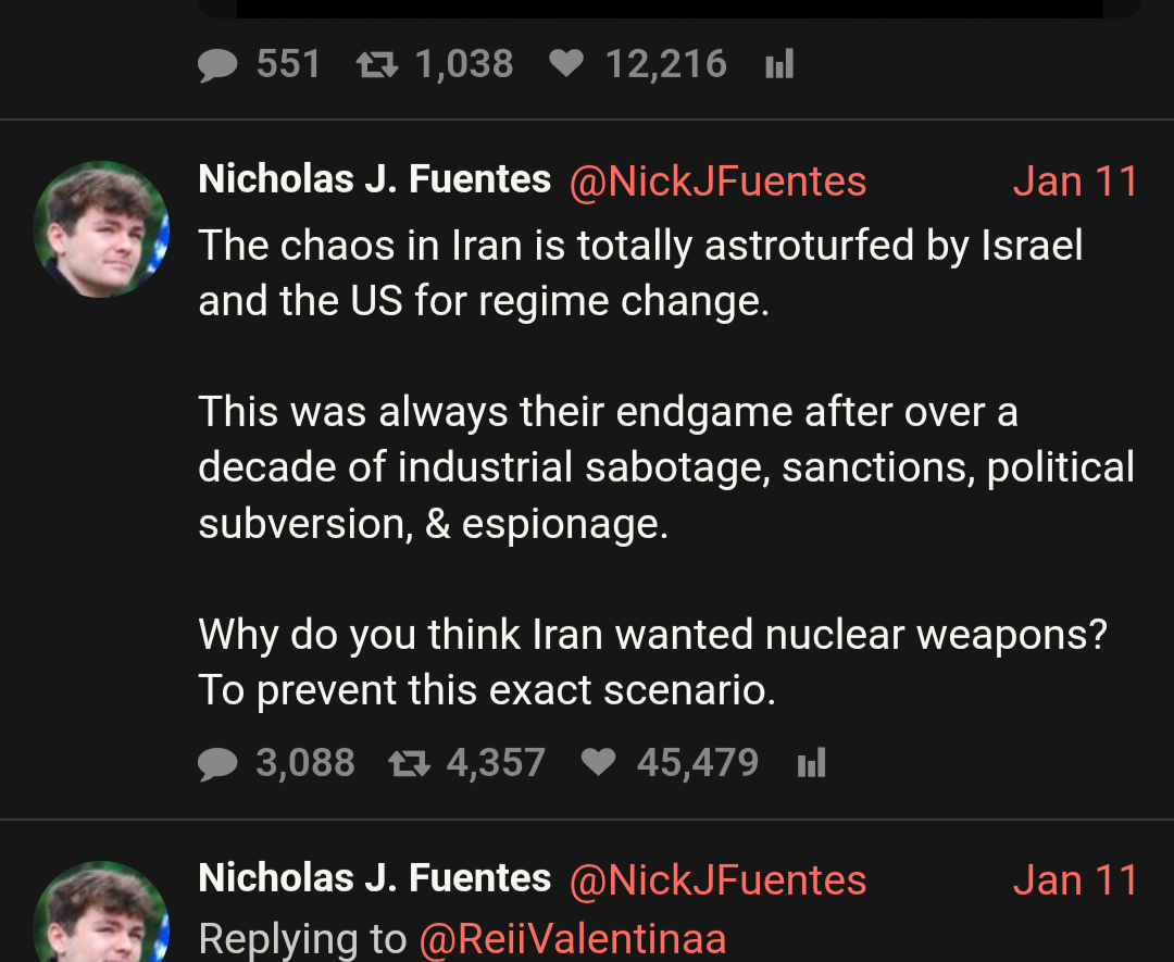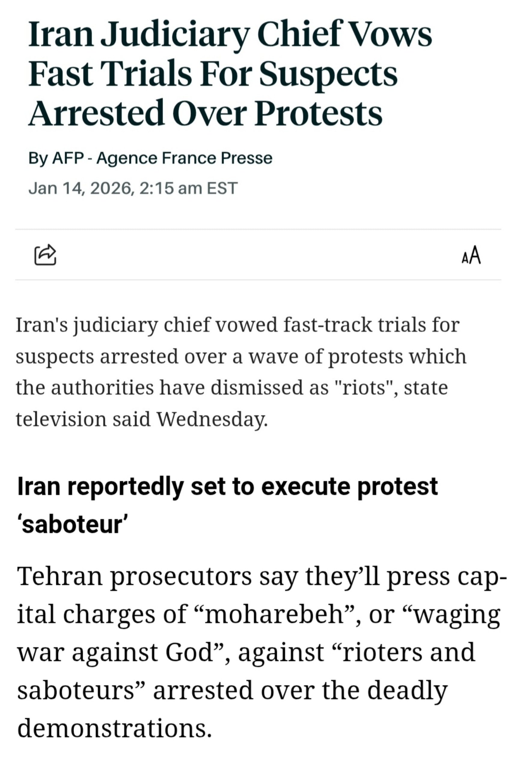 My Iranian boomer landlord who stays in contact with family over there somehow has told me all these happenings are 90% bullshit. There has been SOME violence, but certainly not thousands dead or anything like that and that the Western propaganda machine with its "civil rights watchdog" groups are trying to create pretense.