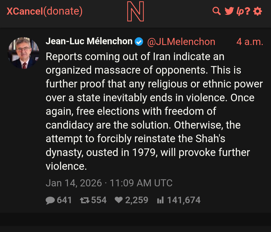 The protests come from a place of real frustration imo, but israel and america are definitely playing a role in stoking the flames and hope to get a puppet regime installed. So called "communists" posting without this in mind are saboteurs and shitposters