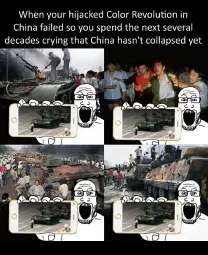 >NOOOOOOOOOOOOO THEY DIDN'T KILL THOUSANDS ONLY 5 LIGHTLY INJURED BY THE PEOPLE'S POLICE