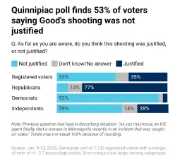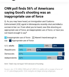 WASHINGTON, Jan 15 (Reuters) - President Donald Trump’s Republicans are divided over whether federal immigration officers should try harder to avoid hurting people following the shooting death of a community activist during an immigration raid, according to a Reuters/Ipsos survey.