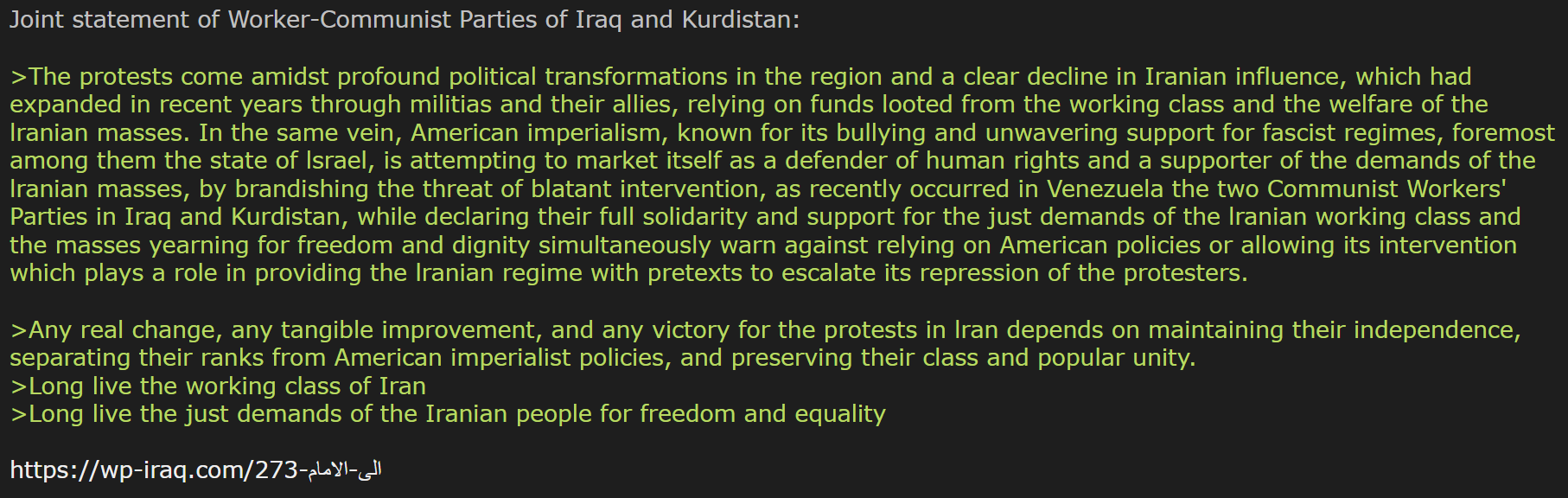 >>2648960>losing Islamist Iran to communists is doomsday scenario for capitalistsUnfortunately, there's no communist/socialist force that could make this a possibility.