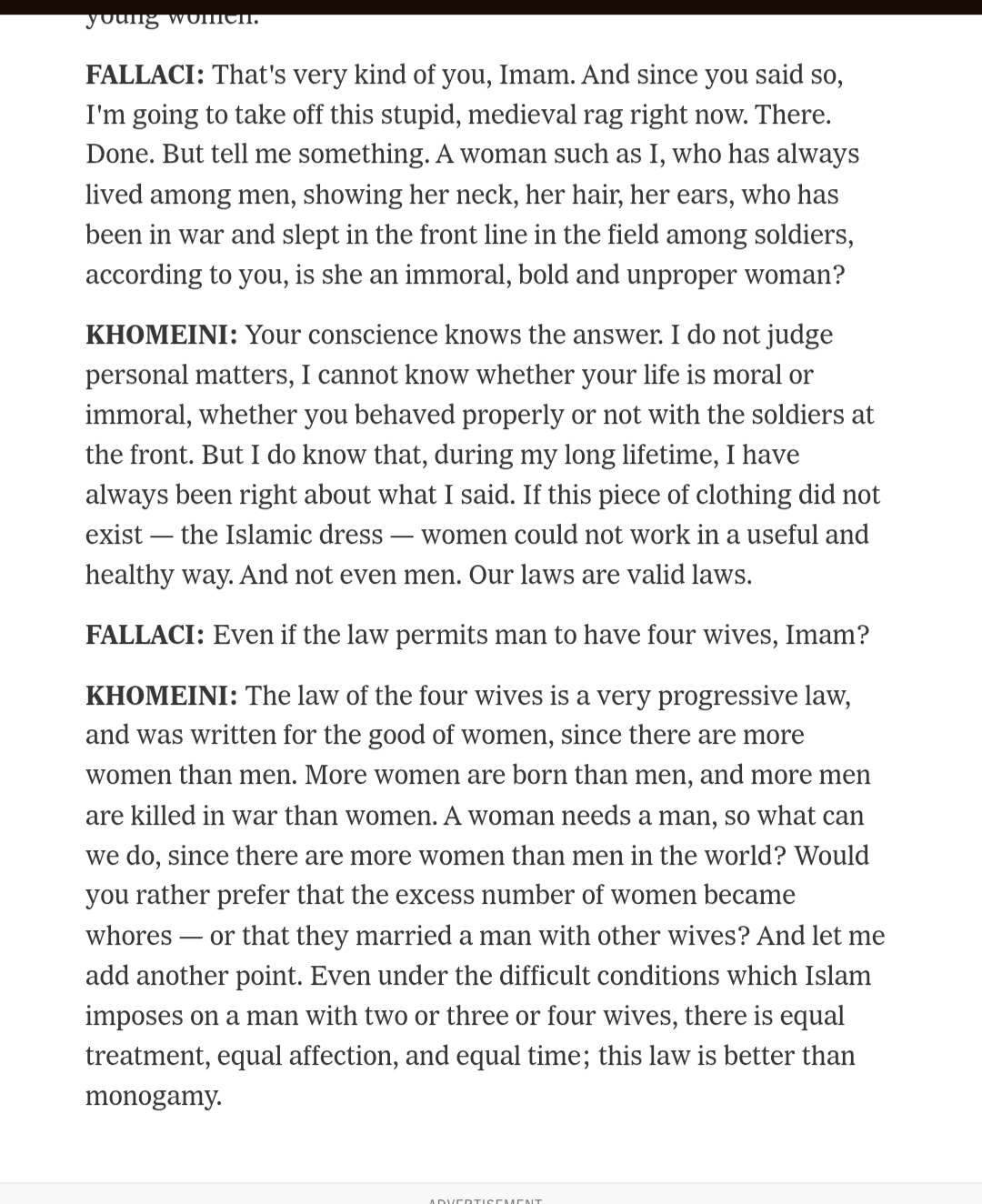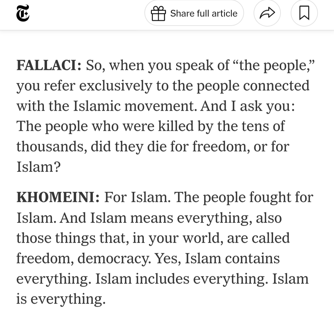 >Islam differs sharply from communism. Whereas we respect private property, communism advocates the sharing of all things – including wives and homosexuals -khomenei
