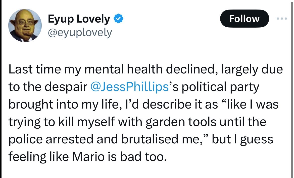 Hence this earth-shatteringly moronic and childlike language used in which the total set of social relations within Britain are embodied in a power struggle and succession of one faction of the petite-bourgeoisie over the other, this operation seeming to be the mere recourse of necessity as British capital is forced into ever progressively reactionary policy measures in order to maintain its standing within the international order. The social fractures which have emerged in the present day as a result of the sustained conflicts against workers within Britain will deepen and intensify as its political rule becomes more regressive over time. It is absolutely farcical that Jenrick has decided to scuttle into the arms of Reform as it is nothing more than a rat fleeing a sinking ship.