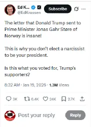 That letter by trump about Greenland is so cringe that I see trump supporters saying it is fake that trump would not say that and that if it was real he would have posted it himself. Insane cope