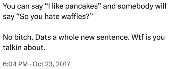 <i might have been born in america, lived in america my whole life, and will die in america, but I do not identify as american so nothing chagosposter says can hurt my feelings, because they do not apply to me. i was assigned american at birth but i am not american, it trvly is that shrimple.he said "understandable" and that's all I need to say to him.