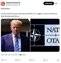 “And until the last few days, when I told them about Iceland, they loved me,” Trump says on NATO, seemingly confusing Iceland with Greenland.