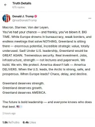 >BREAKING: Trump says that if Macron is 'hostile' to Board of Peace invitation, he will impose 200% tariff on French wines and champagnes.