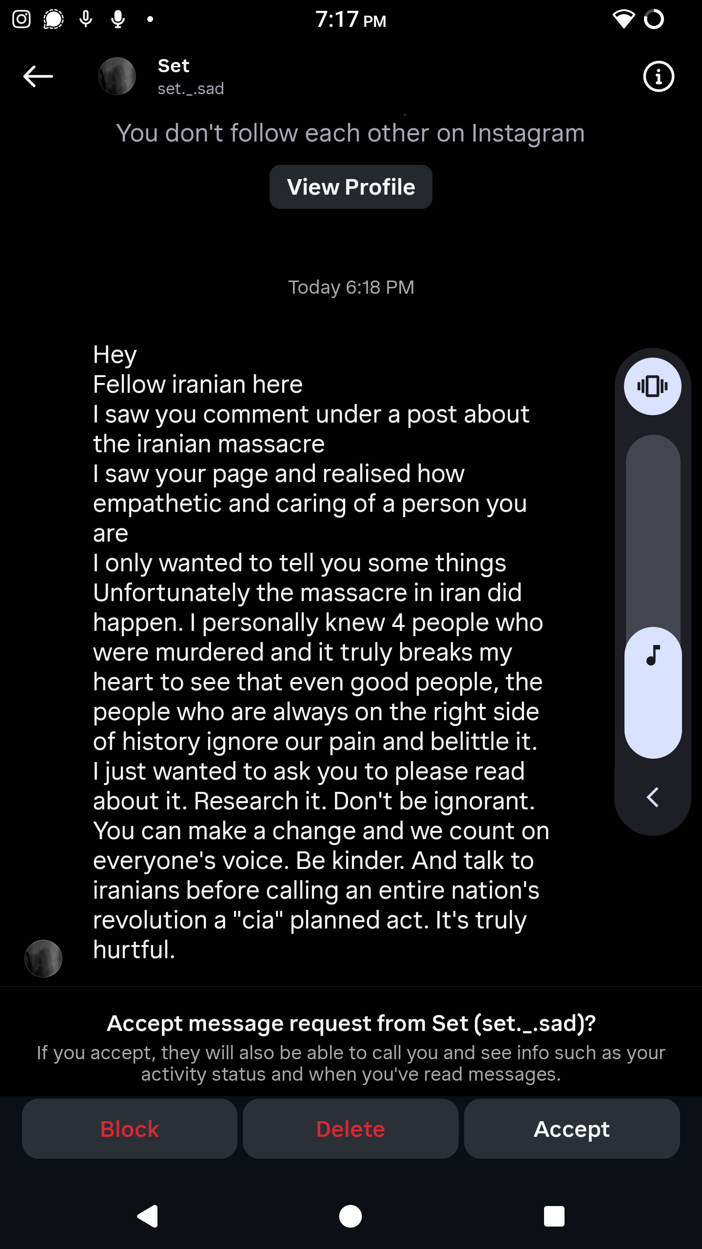 >justification for doing nothing and being obedient to the state is completely servileIm not being servile to my state at all. Its representatives and agents, like you, are watering at the mouth at the thought of the iranian regime being overthrown