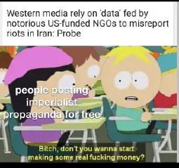 >Mossad/US sponsored regime change color revolution op is le wholesome working class revolution against evil theocratic/bourgeois/islamist/authoritarian/dictatorships