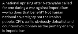 >The war between Iran and Israel is not the result of decisions made by warmongering leaders but it is the expression of the capitalist system today. Regardless of the political façade a state adopts—be it democratic or dictatorial, peace-seeking or openly militaristic—they all share one fundamental trait: sacrificing the working class as cannon fodder in imperialist wars. Without exception, they are all war criminals.https://www.internationalistvoice.org/Recent reports from the streets by Worker-Communist Party of Iran (Hekmatist) translated from Farsi (Jan. 7-13)