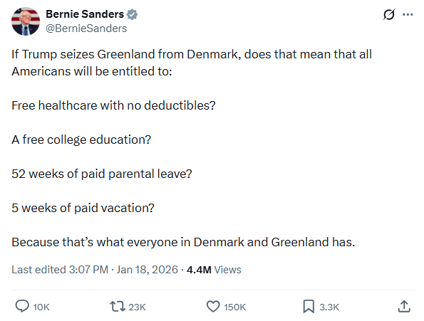 >The ‘cold war’ kicked off demands by the US to take over Greenland as a base for keeping the Soviet Union out of the Arctic. The US offered to buy Greenland for $100m. Denmark did not agree to sell, but it did agree to a treaty which allowed the US to have a permanent military base on the island, forcing some Inuit families out of their homes to build the base. Later, it was discovered that Denmark had also agreed to allow US nuclear weapons there, some of which got contaminated with radioactive debris in 1968 – one bomb is still missing! So much for Denmark’s official ‘nuclear-free’ policy.https://thenextrecession.wordpress.com/2026/01/21/from-monroe-to-donroe-greenland-and-carney/>>2658508There’s not gonna be a prole revolution here because there are no proles, it won’t be on an ethnic or linguistic basis because most speak English and regional cultural differences are a meme, the cities depend on the rural for food and the rural depends on the city for machines, there will never be a civil war in America, we are all the same. Any talk of civil war among Americans is the narcissism of small differences and kayfabe.