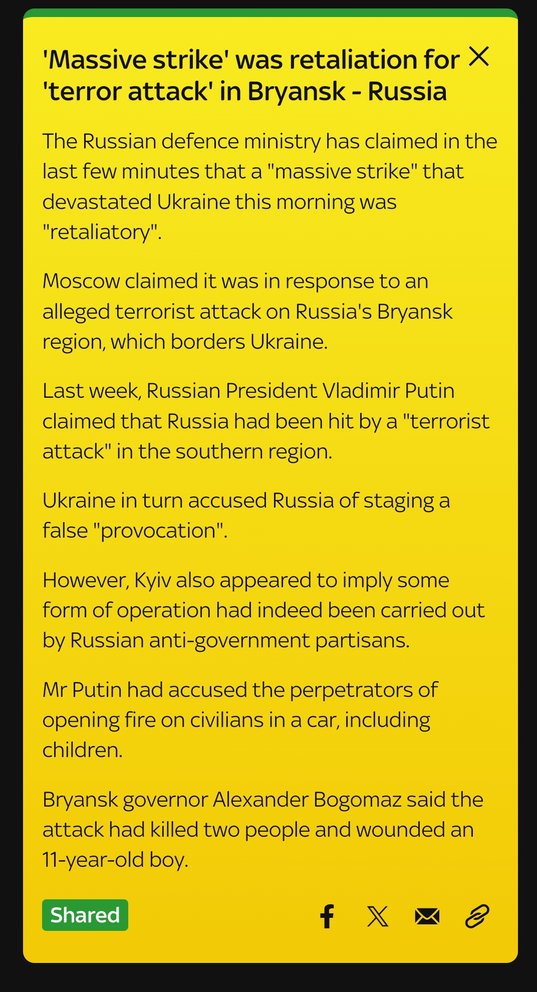 >Russia said they tried to do the right thing and Ukraine exploited itpart, while conveniently leaving out the context that explains