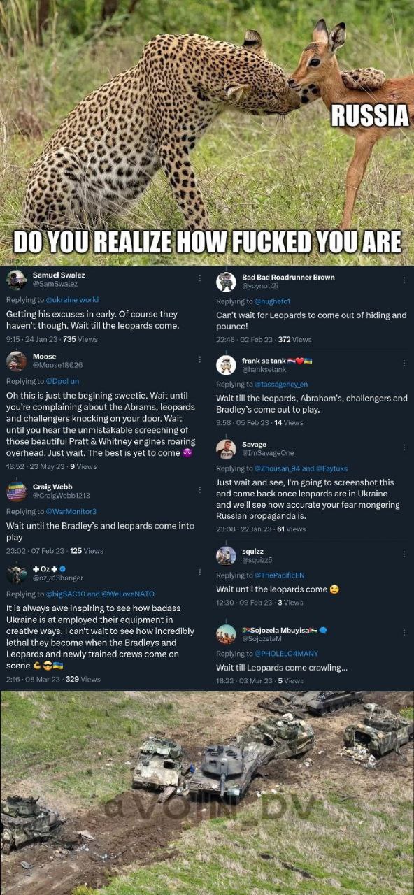 >It cites statistics published in the March issue of the Russian Ministry of Defense’s Military Medical Journal. The document is based on interviews with more than 6,000 wounded servicemen. In addition, it found that around 20% were injured by artillery strikes, with only 4% injured by small arms fire.https://www.kyivpost.com/analysis/49712So can we extrapolate that we actually have close to 75% of all killed/wounded russians on tape, since there is potentially always video available on drone kills and Ukrainians and nafoites love gore and love to post and brag about it.
