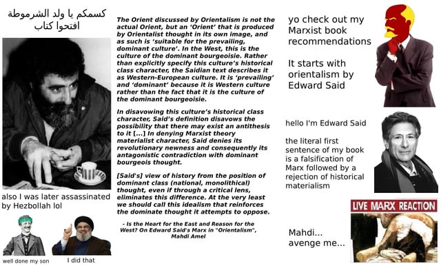 >>2662008Hakim is representative of many muslims in leftist spaces: very perceptive and 'red' when it comes to analyse and oppose colonialism, christian supremacy, white supremacy etc etc. But suddenly completely impotent and willingly ugnorant when it comes to islam. Suddenly they have a good 'Marxist' explanation for everything: hijab, the need for every muslim majority country to be an 'islamic republic', the need for socialists in thess countries to be 'islamic socialists' etc.