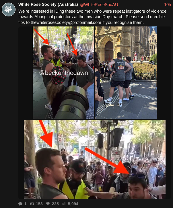 >>2668789By the numbers of Invasion Day protesters, I'd guess it's rightoids moving through them.