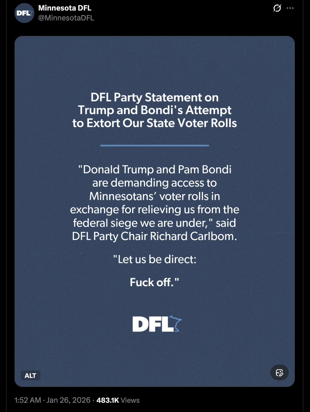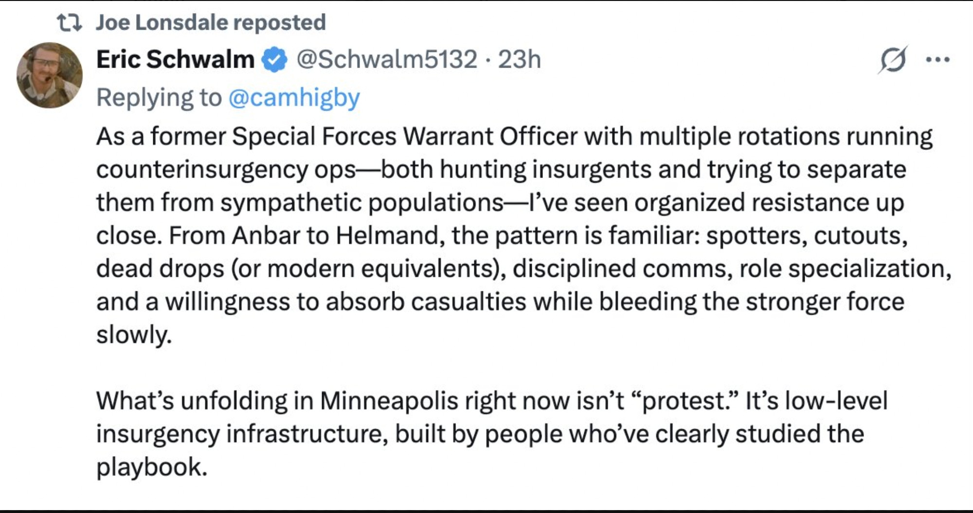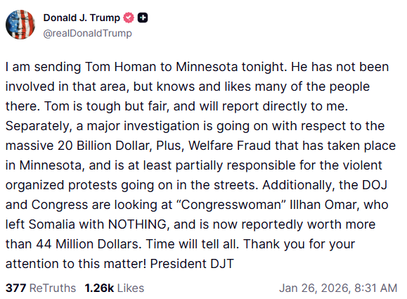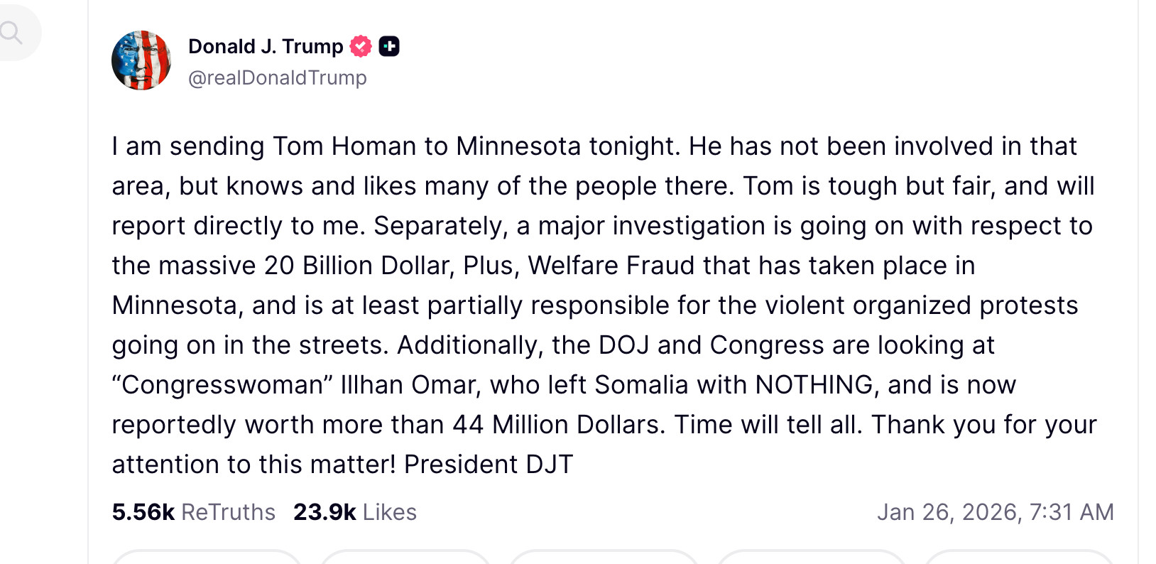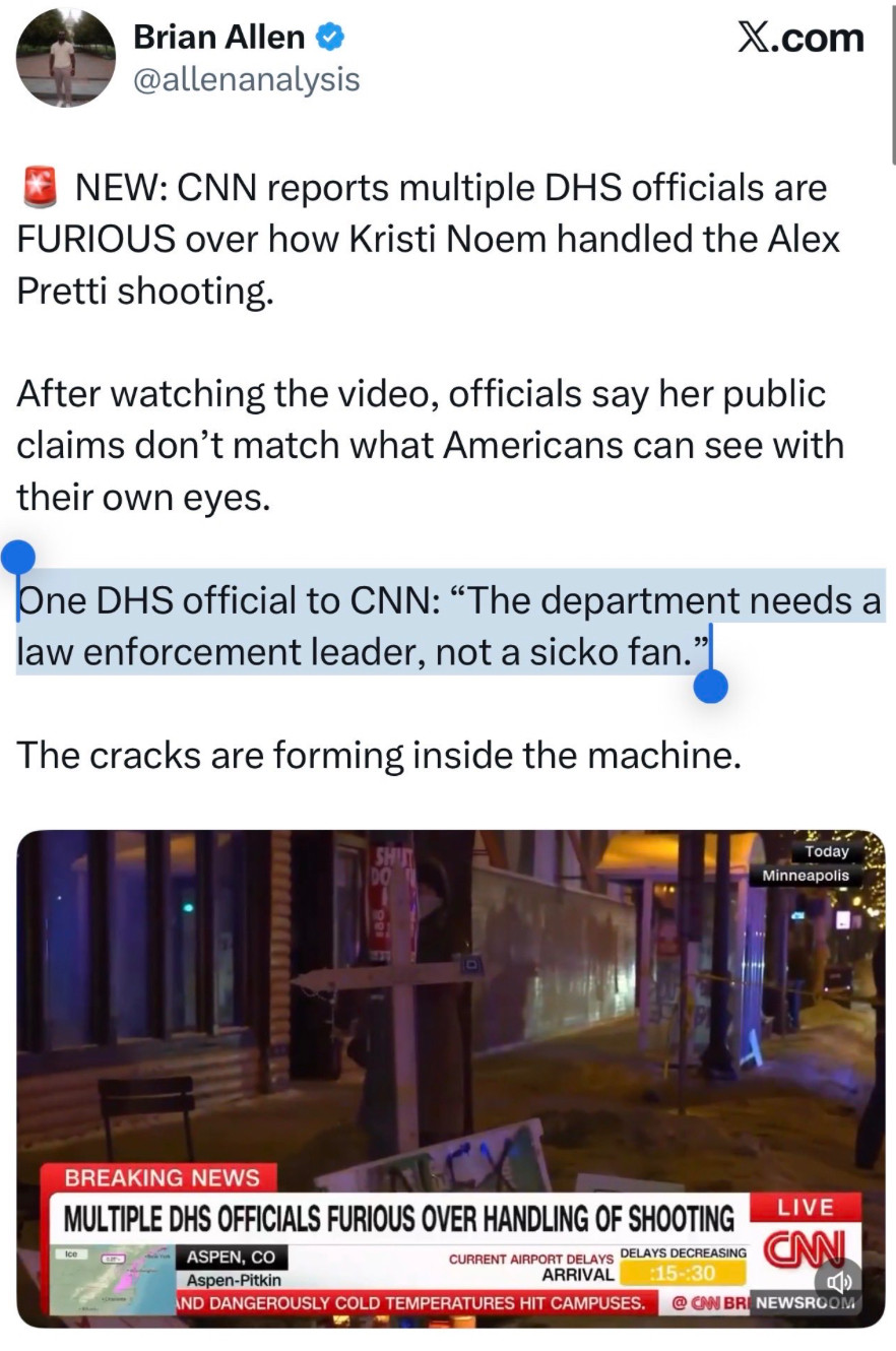 Sending Tom Homan in to Minneapolis is in its own way angering, it reminds us how Obama betrayed so many people. Attempting to build some kind of Democratic Party consensus. I wonder if the Dems realize how much opinion is shifting against them.