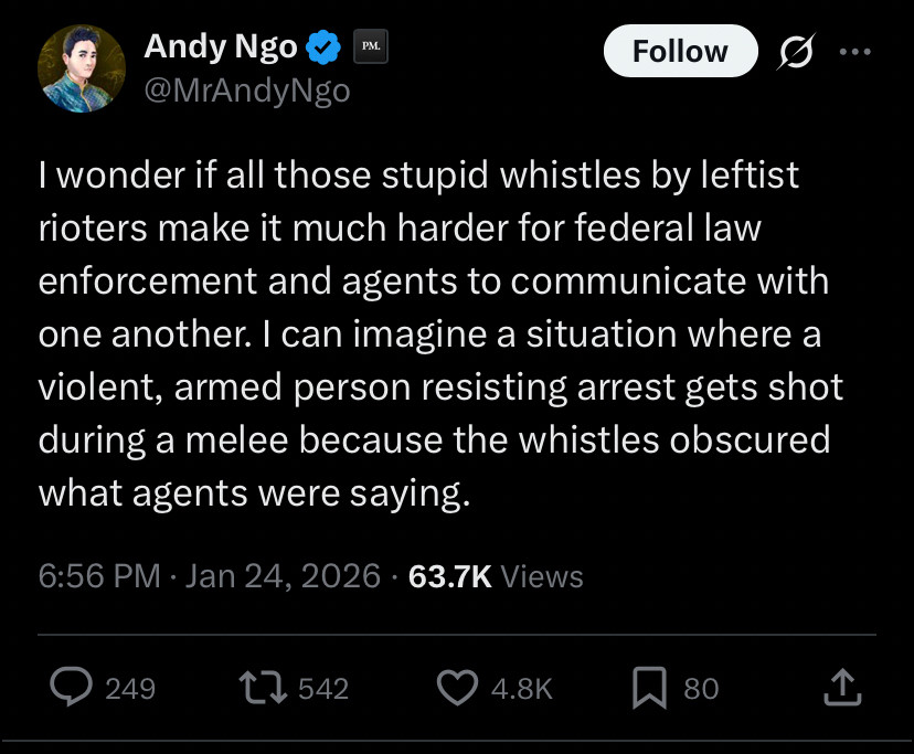 >>2666506They need to be humiliated and the murderers of Pretti and Good need to be arrested. They have thus far interfered with the investigation to such an extent the Pretti's killer is not even know to anyone besides the feds.