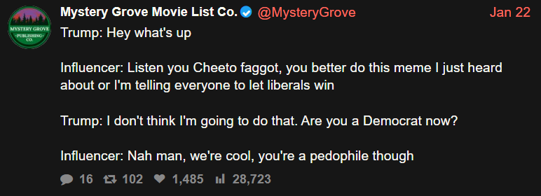 >>2667042We should get ahead and make it ourselves, but make it subversive – like just when you started feeling bad for the agent BOOM he's a pedophile who used grok to make child porn of his niece and nephew.