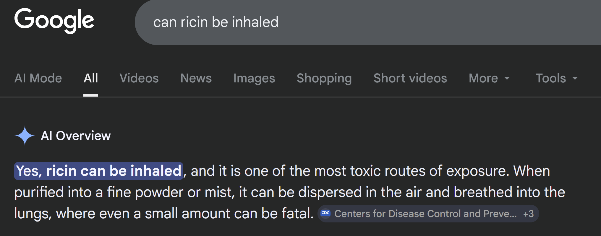 >>2668547I dont think its that because ricin has no cure, the guy would inhale it also so unless hes also willing to die it isnt ricin