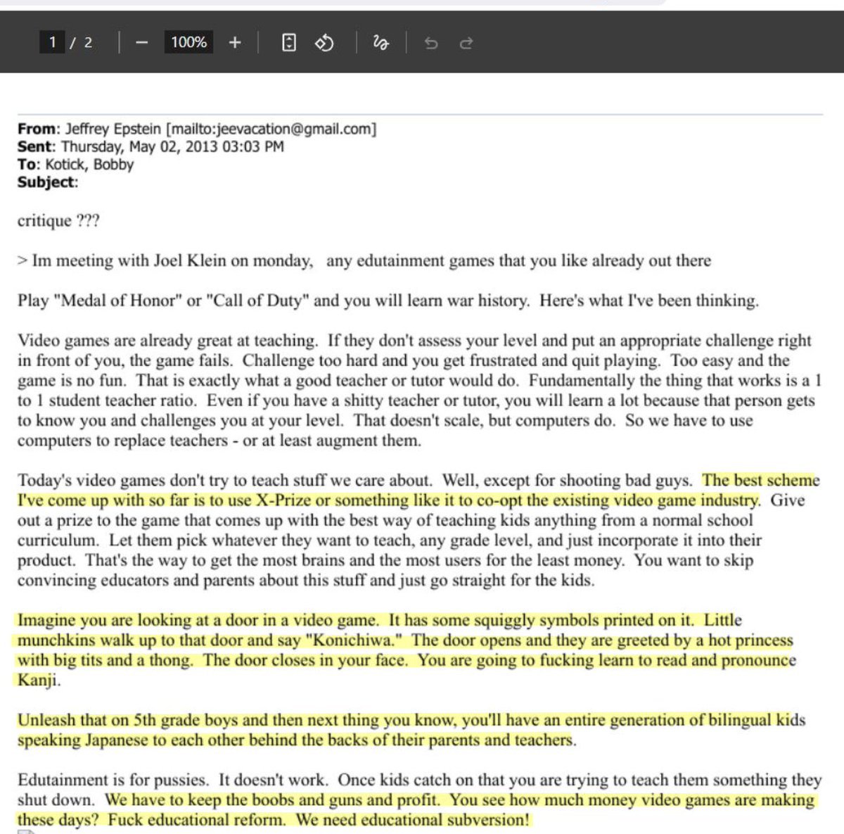 Am i the only person who doesn't think Epstein meeting with moot one time means that an entire political movement was astroturfed? Pol was most likely already in the works and had nothing to do with anything Epstein said. Epstein liked to talk a lot, that doesn't mean all these emails reveal the genius machinations of the elite, it's mostly him spitting out random ideas that may or may not be taken seriously at all.