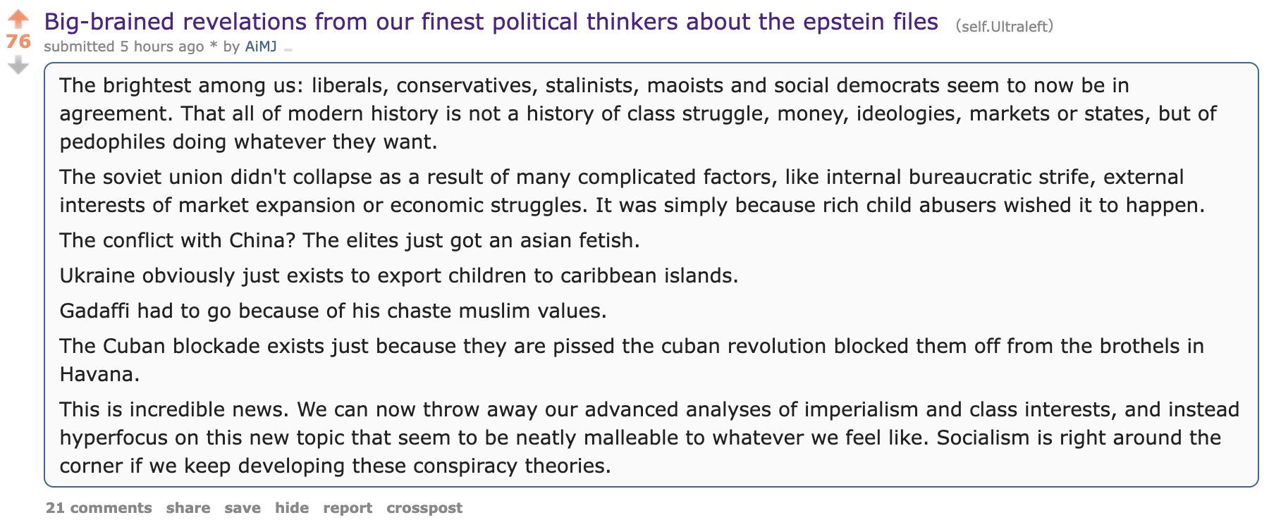 This shit is no fucking different from saying "god bless America", these cretin / tools are literally keeping America and the whole of the West reliant geopolitically on it - alive by proposing reformism and rejecting any notion of destroying it wholly.