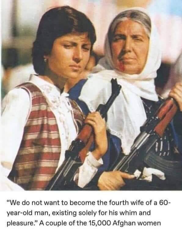 >>2677312<the Soviets who intervened on the behalf of the socialist regime that kept the women in the pic armed and out of trash bags were actually heckin imperialists o algoEnjoy your niqabs