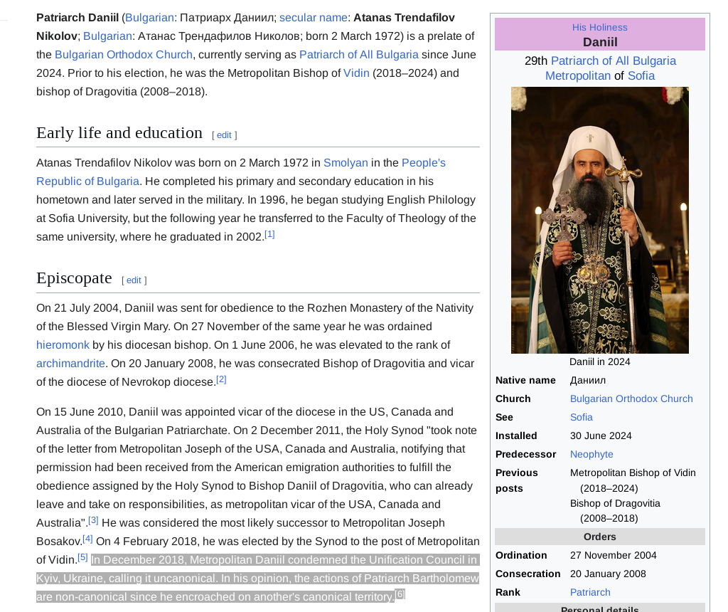 >>2679785The Bulgarian patriarch Daniil literally sided with the Russian orthodox church over the schism you retarded western bastard.