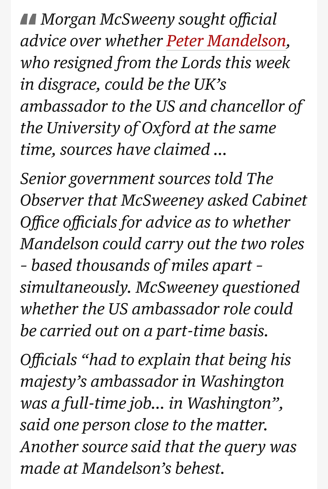 Hopefully part of what comes out is the bashing of the left of the party, one of the main reasons Mandelson is where he is, is because he and McSweeney were the architects behind Corbyn's downfall.