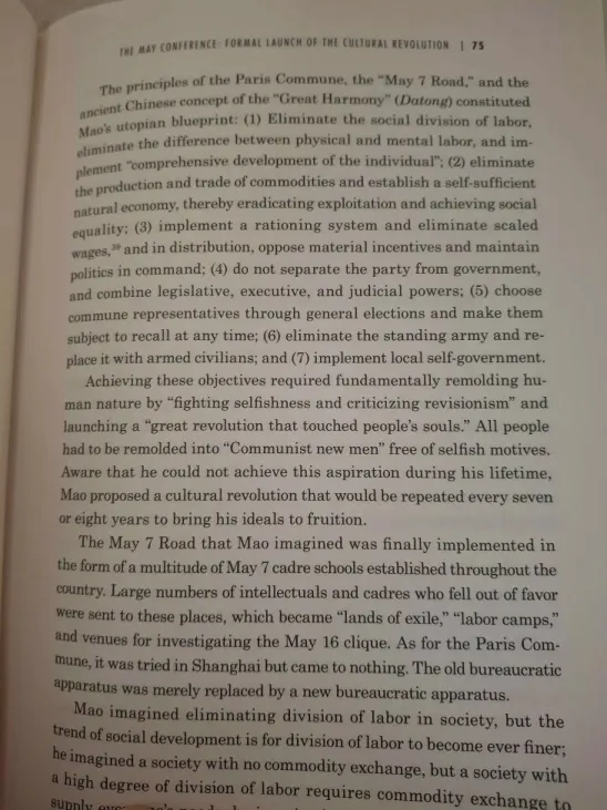 >>2681550People have this idea of Mao era China as le Chinese emperor but Communist but that's anti-communist nonsense. Chinese Communism in general always had a much larger strain of Anarchism running through it than most other places with successful revolutions because Anarchism caught on in China significantly before Marxism did. The Mao era had a lot of really interesting experiments in how to balance Leninist and Anarchist organizational models, the Cultural Revolution most obviously and importantly. And from Mao, the CRSG and the radical Red Guards factions there was a relatively consistent push for immediate higher stage Communism. For instance the opening agenda of the Cultural Revolution included abolition of commodity production, the division between town and country, the division between mental and manual labor and the reorganization of China along the lines of the Paris Commune. Pic related. The ultimate reason this didn't happen wasn't because Mao was an opportunist either, in 68 there was a military mutiny against Mao and the radical factions in Wuhan that nearly went national and Mao reluctantly backed off after that. The irony of the Chinese emperor trope is that it was the more anarchistic factions in Mao era China that were the most hardcore about his personality cult, the technocratic rightists who became the nucleus of the post-Mao CPC were a lot more wary of it.