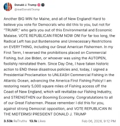 Folks, the only thing that can threaten our big beautiful fish stocks are liberal democrat windmills. Offshore windmills kill more fish every day than we catch in ten years. It's true.