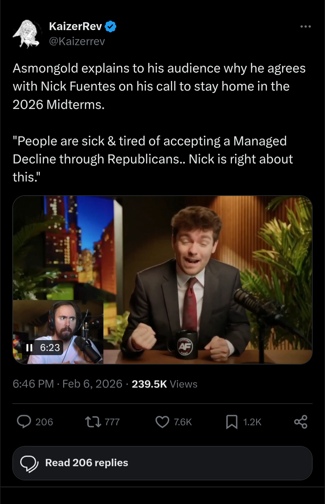 Like we need some perspective here. One thing is happening on twitter, and the other is a suffocating, unavoidable reality of the American political system which it is literally taboo to even acknowledge in mainstream discourse. If there were rampant antisemitic hate crimes - or if it even reached anywhere near the level of, for example, the covid-era anti-Asian hate crimes - then maybe this would be a defensible position. But this "rising antisemitism" has had precisely 0 effect in the real world. The zionist boot is still on America's neck, and after 30 years of anything short of abject obedience to Israel and zionists being called "antisemitism", you can't get mad at people for going "I don't give a shit if you call me antisemitic anymore".
