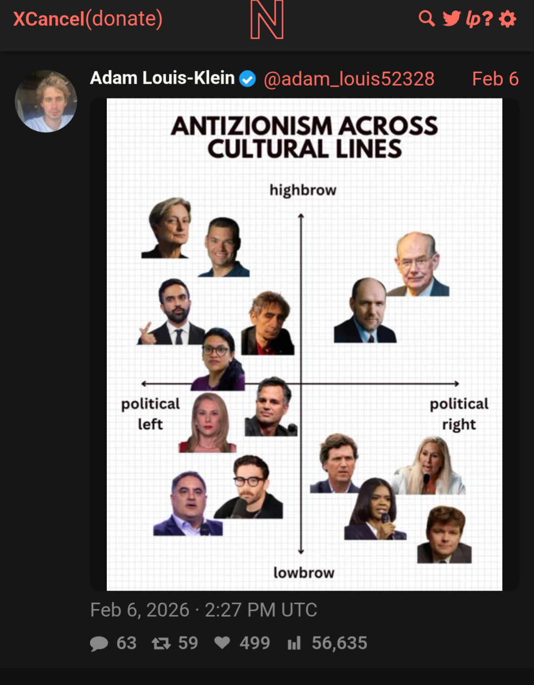 I'm if you can be convinced that "rising antisemitism" should rank in even the top 100 political concerns of the average American, worker, or "westerner" (broadly construed), then you are almost certainly terminally online and have a skewed perception of reality. Let's just account for the actual, concrete political actions of "zionists" over the last 3 years vs. antisemites: