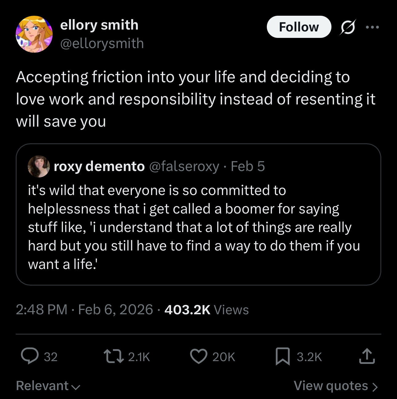 I don't think it's necessarily everyone else's fault that someone can't find a mate though. I am an incel but I wouldn't blame women for my inability to get laid. It's mostly my own avoidant personality. And I'm guessing the same applies to most of these people dating AI. They're just too terrified of rejection or imperfection that they'd rather interact with a product than a person.