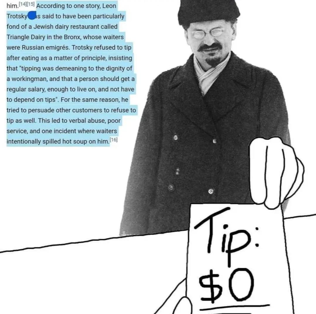 "Hate" implies a personal investment in the guy I simply don't have. To be clear I don't care for so-called "dispassionate" historical "analysis", but who Trotsky was and what he did matters less by the day. Some have brought up that he possibly assisted fascists and imperialist forces against the Soviet Union, and this is certainly a black mark against him personally, but this is ultimately inconsequential analyzing the tendency named after him. That tendency as well has largely lost any singular meaning in the modern day, and today the common usage of the term is essentially meaningless and not actually connected to any concrete politic or criticism of one. The main reason for this is that revisionist "Marxism-Leninism" and Trotskyism have both convergently evolved to be essentially identical (hence why WWP and PSL are rarely ever called out for their blatant Trotskyism) and in agreement on the theory of productive forces, centering revolution in Euro-American industry as the main necessity, downplaying national liberation struggle, practicing entryism, and denying that the class struggle continues under socialism within the Communist Party, in particular denying the possibility of a new bourgeoisie emerging within the Party — "Marxism-Leninism" instead converging on Trotskys concept of a "degenerated workers' state." Those Trotskyists who haven't converged with "Marxist-Leninists" in theory and practice have done even worse for themselves and are essentially just social fascists, or just straight-up fascists in the case of the Socialist Workers Party USA.