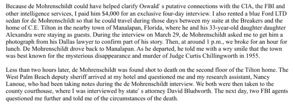 Then this guy, De Mohrenschildt, he goes on to write George HW Bush a letter in the 1970s, over a decade later, saying, basically, "hey old buddy old pal, my house is bugged, please get these people to leave me alone, I think I fucked up and talked too much about Oswald" and fucking commits """suicide""" by shotgun less than 1 year later… George HW Bush confirms on an official CIA document that he knows this guy and the handwritten letter is literally preserved as a scan.