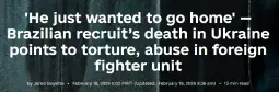 >A 28-year-old Brazilian volunteer serving in the GUR's "International Legion" died under torture in Kiev, according to Kyiv Independent.