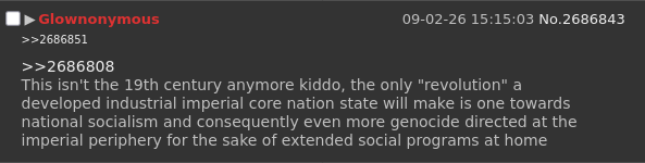 >>2686907>ok but then why do anons act like the concessions are the point rather than the profitsBecause they're stupid and/or glowies. Third worldism is the result of embittered Western leftists getting frustrated with the lack of progress and going into "billions must die" mode, and is also probably pushed by the feds to further weaken the socialist movement in the West. There's a reason why it doesn't really exist in the third world.