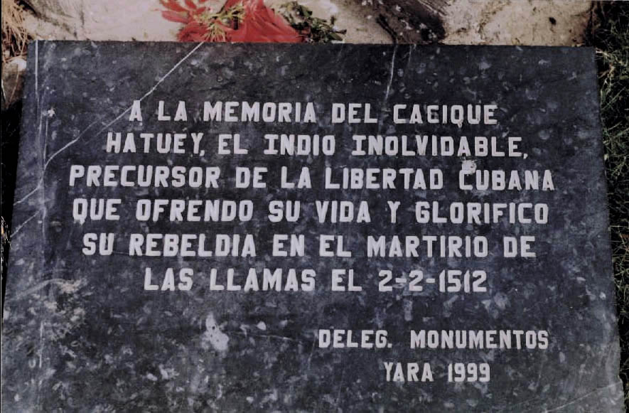 >The Taíno chiefs in Cuba did not respond to Hatuey's message, and few joined him to fight. Hatuey resorted to guerrilla tactics against the Spaniards, and was able to confine them for a time. He and his fighters were able to kill at least eight Spanish soldiers. Eventually, using mastiffs and torturing the native people for information, the Spaniards succeeded in capturing him. On 2 February 1512, he was tied to a stake and burned alive at Yara, near the present-day city of Bayamo.[6]