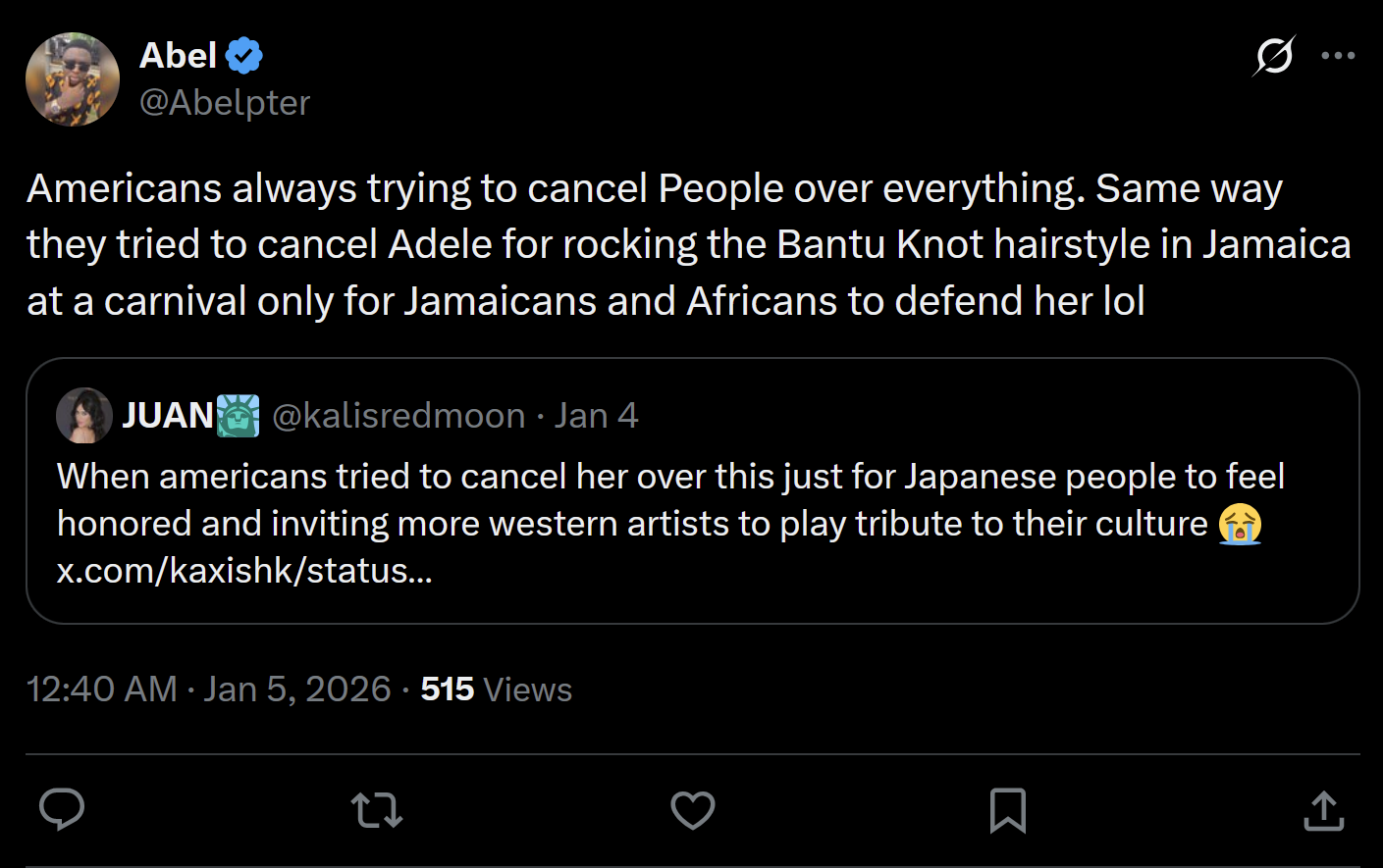 >>2692975Like I remember during the great Adele Bantu Knot controversy. It was all FBA's going: