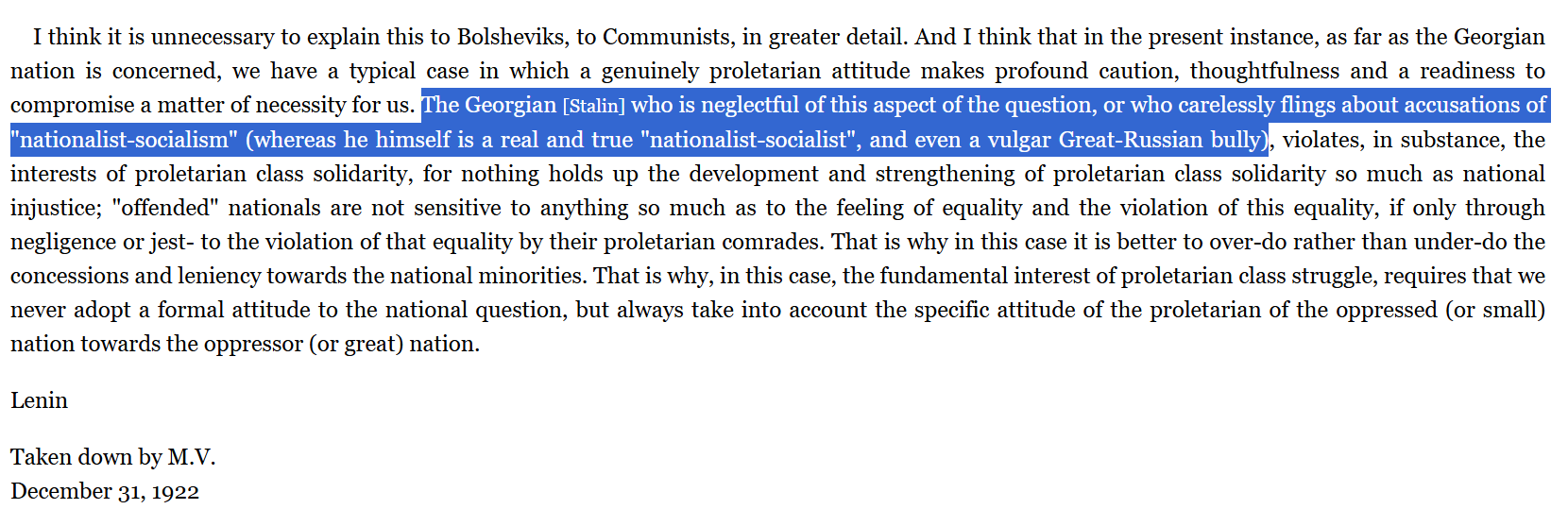 <For socialism is merely the next step forward from state-capitalist monopoly. Or, in other words, socialism is merely state-capitalist monopoly which is made to serve the interests of the whole people and has to that extent ceased to be capitalist monopoly.[…]