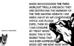 What do you ever do except bitching and moaning that third worlders are rude to you on an imageboard?