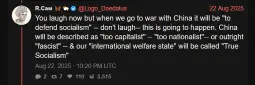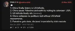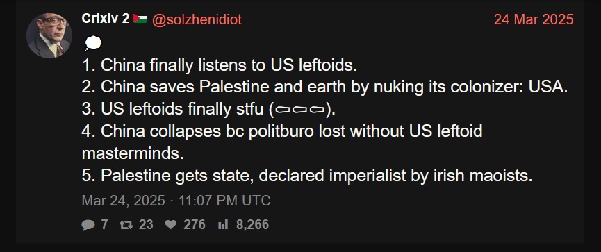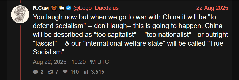 Waiting for Comrade Kulinski to take the mask off fully and start wearing a Mao suit a la Hasan on stream. He was glazing China yesterday, clearly has no patience left for capitalists and has indirectly called for ICE goons to be shot. He's 90% there.