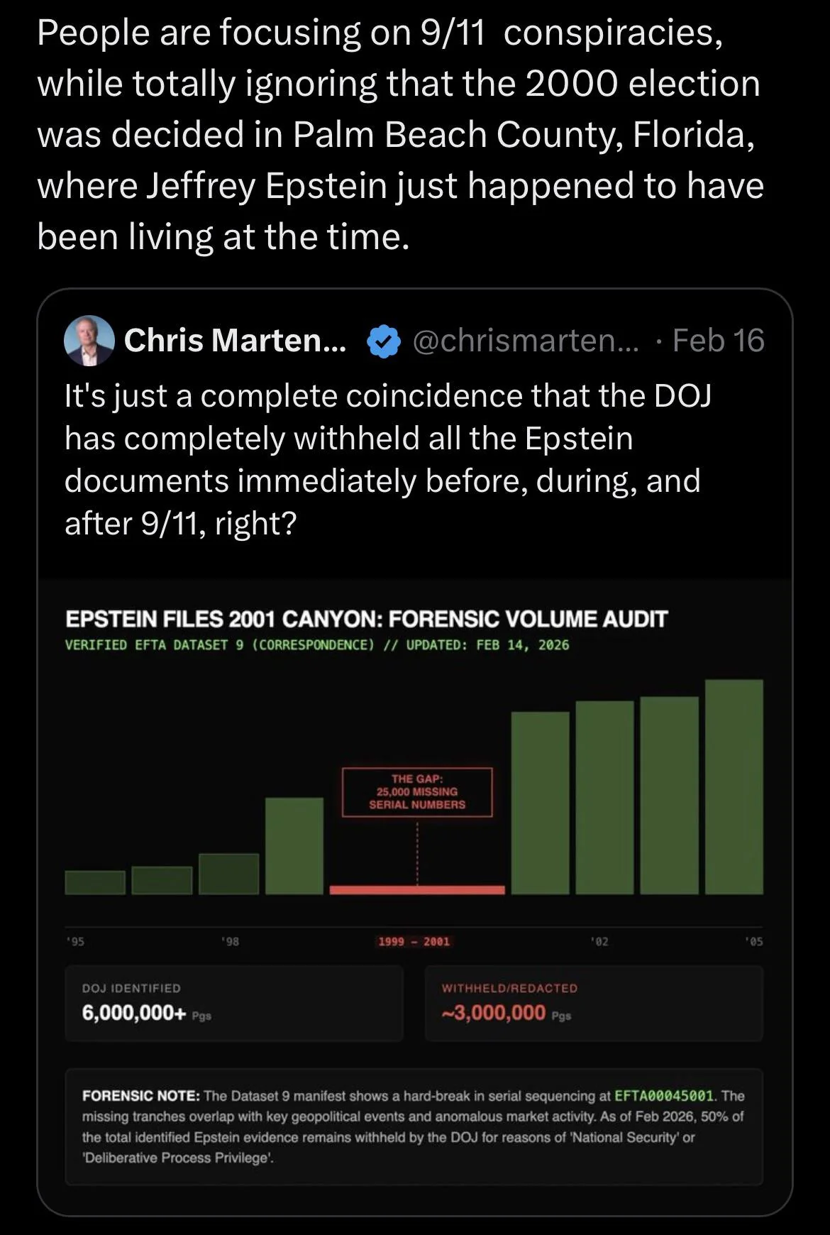 >GGM: Everything North American journalists know about drug trafficking in Colombia, which is a lot, they know because Colombian journalists have investigated it, have uncovered it and many of them have sacrificed their lives for those publications. However, we don’t know anything about how drug trafficking is in the U.S. because North American journalists do as if it doesn’t exist. If in the U.S. 30 million drug addicts are supplied with drugs daily without incident, without any problem, as if it were delivering milk, bread, the newspapers—if they can get supplied without incident, it means there are Mafias which are much more powerful than in Colombia and a much more significant corruption of the authorities than in Colombia. The problem is humankind has lost control of the problem of drug trafficking and drugs. It doesn’t mean we’re going to become discouraged and we’re not going to continue fighting, but we’re not going to make the assumption that the drug problem can be solved with glyphosate fumigations and with Congress certifications when it’s a problem the whole world suffers from and cannot resolve. It’s like the medieval plagues which were over when they were over. From there to say what I’ve been thinking since a long time ago and I’ve said the only thing that can save us from this is legalization, the decriminalization of drugs. But we have to be careful with the implications. This doesn’t mean we’re going to do it in Colombia and they’re not going to do it in Peru and they’re not going to in, no. It’s only possible when it’s a global agreement, of the whole world completely and without exceptions because when there’s one exception, it fails. And it’s very difficult to achieve because the interests committed in the immense drug business are so big and so high up which will make it very difficult to reach a global agreement.https://jorgeluiscarbajosa.com/2020/12/02/gabriel-garcia-marquez-interview-by-ana-cristina-navarro/we will know about these pedophilia investigations not because ncbc, msn, abc, the hill, fox news, etc. will investigate it, but because some global south journalist will uncover it, and he will be immolated in the process, and no one will say shit in the US.