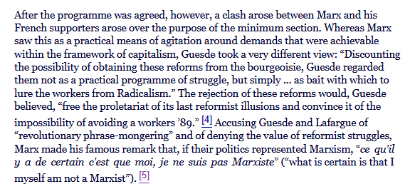 >In fact that was the exact context for the famous 'If anything is certain, it is that I am not a Marxist" quote.this quote was him admitting that most of the movements calling themselves marxists at the time had not done the reading.
