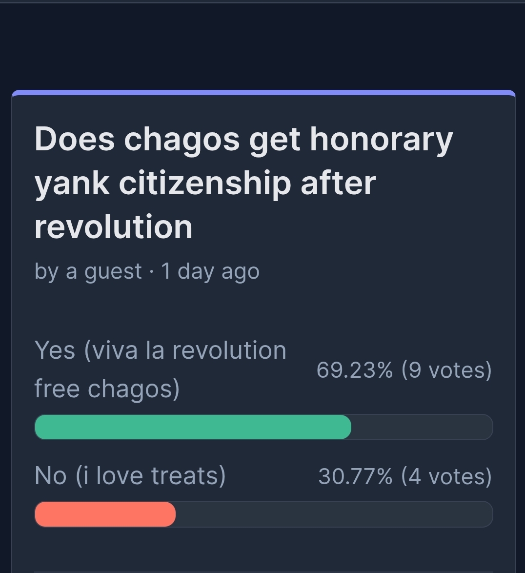 >>2699749All i ask is be nice to Chagos. He is literal survivor of genocide which you epstein people perpetrate.