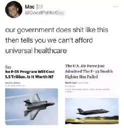>>2698920>Having the worst healthcare in the first world is better than the best healthcare in the third world, that’s the pointok, but just like you compare the conditions of third world to first world, americans are also going to compare their own conditions to other first worlders. no american is going to go "i have it good because i'm not a third worlder" they're going to go "why the fuck do we pay more for health care per capita than other first world countries"