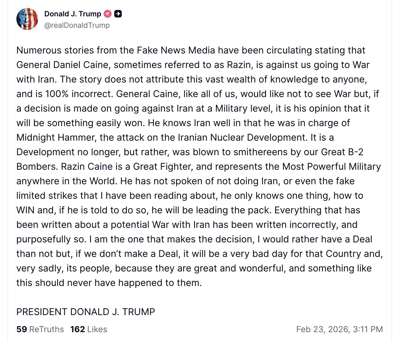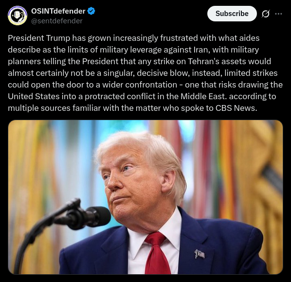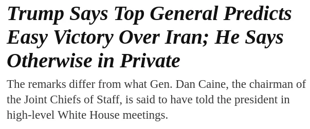 Retard-in-chief Trump seems to be betting on a quick pro-US coup from either the IRGC or the army, which highly unlikely to happen. He's just gonna get roped into a longer war by the Israelis.